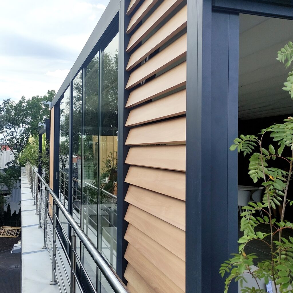 Wykonane w całości z aluminium, cechują się wysoką trwałością, odpornością na warunki atmosferyczne i łatwością konserwacji. Idealnie komponują się z konstrukcją pergoli, podnosząc jej komfort i funkcjonalność przez cały rok.