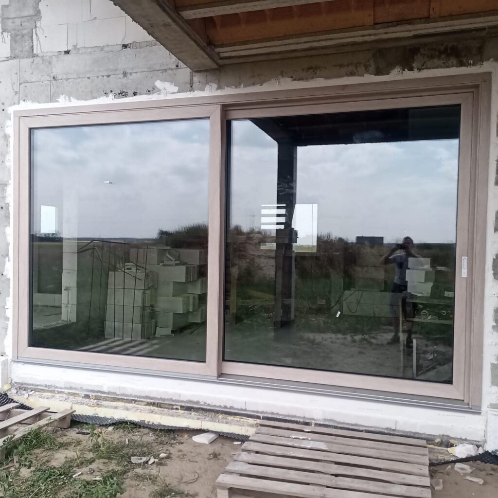 Nasza realizacja w domku jednorodzinnym. Profil okien Gealan S 9000, okno przesuwne HST- kolor: dąb bielony. Montaż za pomocą systemu #TytanWins, który jest idealnym rozwiązaniem zapewniającym trwałość, szczelność i izolację termiczną.
